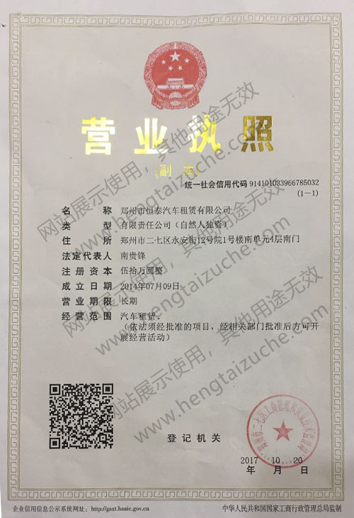 公司簡介 鄭州市恒泰汽車租賃有限公司結合國際、國內租賃行業的發展趨勢,制訂了詳細的發展戰略,高視野、高起點、高目標、高投入,面向高、中端長租客戶群體和廣大散租市場,致力于推動、引***行業的創新和發展。公司不斷地吸收、借鑒國外及國內同行的***管理理念、管理經驗,在經營機制、管理模式、租賃方式、服務項目等方面不斷創新,引導并滿足廣大客戶的不同需求。幾年來,形成并不斷的提升企業的核心競爭力。恒泰租車公司一直以務實的態度、中肯的價格、贏得客戶和企業對我們的高度忠誠度和信任感。我們用心的服務為我們積淀了一大批長期忠實的客戶群體,在行業內具有良好的信譽。恒泰租車公司擁有奔馳S600、別克商務7座、別克君越5座、奧迪A6L、豐田系列等高、中檔各類轎車、商務車、17-61座巴士等。公司的主要業務:長、中、短期的各種形式租車;個人和單位租車、公務、商務用車、企業班車、旅游租車、機場接送、會務會展租車、長途商務旅游租車;代駕、自駕、包租、以租代購服務。本著“客戶至上、滿意服務、舒…… 【閱讀全文】 聯系我們